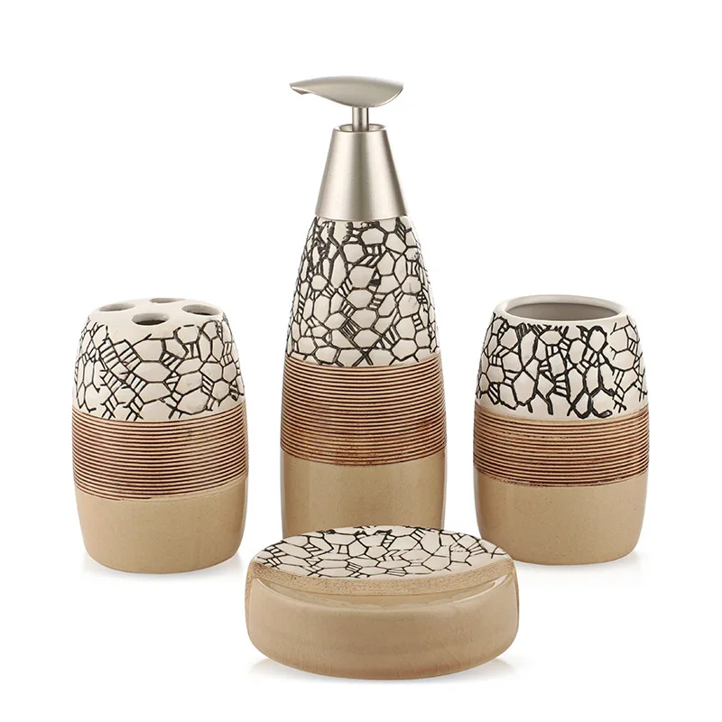 . [Скидка 40%] Купить 100% керамические аксессуары для ванной комнаты 4 шт набор для ванны Подарочный набор держатель для зубной щетки набор стакан мыльница в том ч... Продажа Дешево.